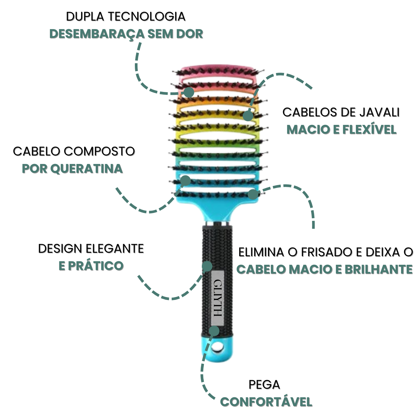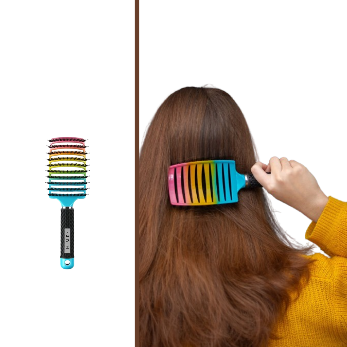 Todas as manhãs, vivemos a guerra do cabelo. A batalha é real. Ponha fim às lágrimas e aos gritos que acompanham o cabelo emaranhado quando se levanta da cama de manhã. Graças ao seu design inovador que combina cerdas de javali e pontas de nylon frisadas, a escova GLIYTH desembaraça facilmente os cabelos emaranhados sem o desconforto das escovas tradicionais. Substitua as lágrimas por sorrisos, poupe tempo precioso, reduza o stress e comece cada dia com alegria.