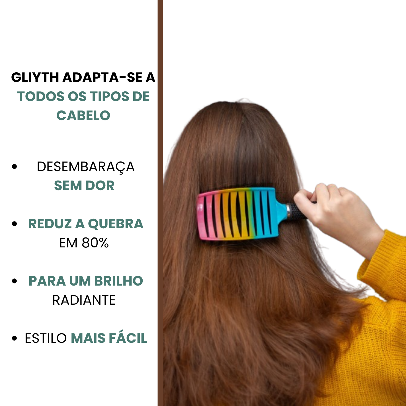 Ao reduzir as pontas espigadas, a escova desembaraçadora Gliyth reduz a queda de cabelo até 80%. Como é mais fácil desembaraçar, há muito menos quebra.